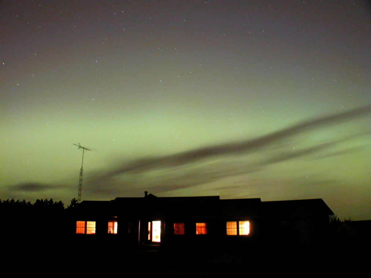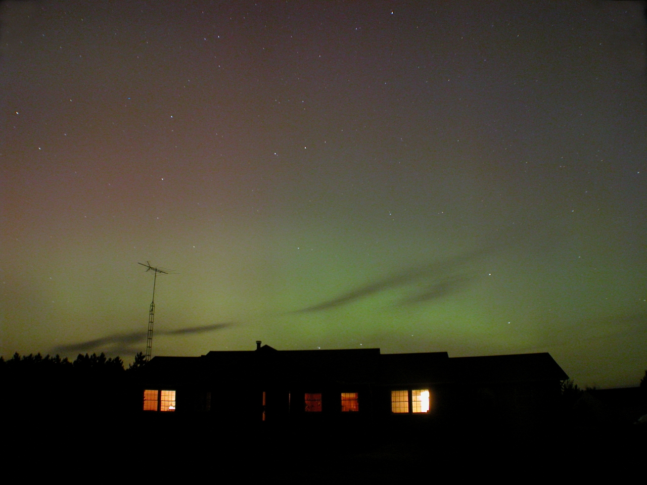 Now and then the sun ejects some of it's matter into space. Such an event is known as a Coronal Mass Ejection (CME). If Earth happens to be in the way, the particles interact with our atmosphere and creates a light show know as an aurora. These aurora are more common near the Earth's poles but are occationally seen at much lower latitudes.