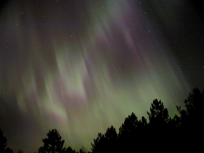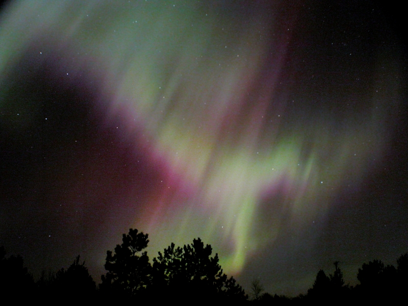 I haven't seen a diplay like the one in '04 here in lower Michigan since the late '70s. Another great but very short display occured on 10-24-11 but my Nikon batteries were dead. However, I did manage to capture them using my SkyCam, but they are in Black & White. See the SkyCam page for those images.