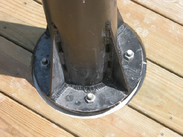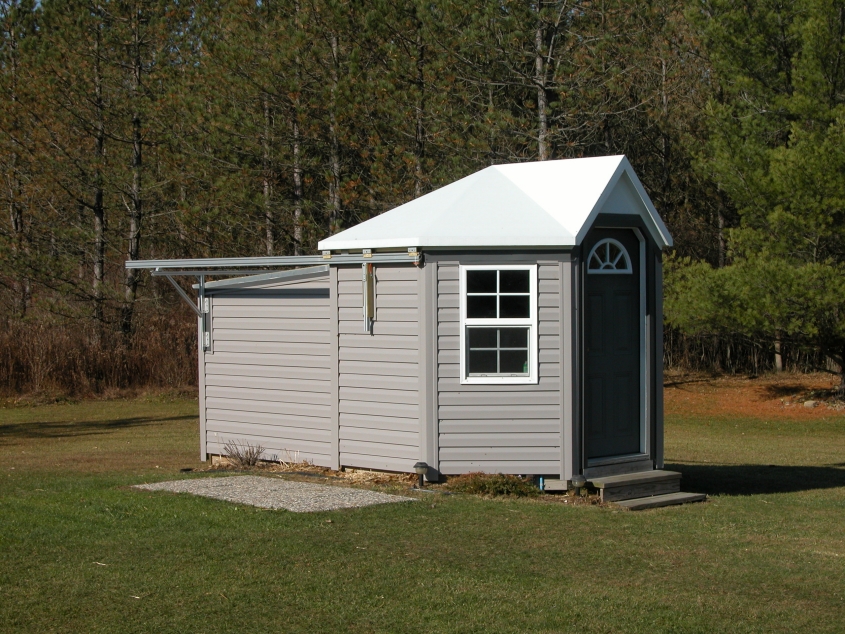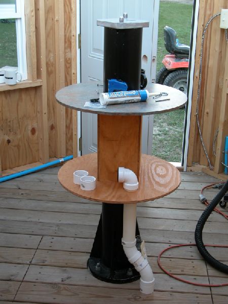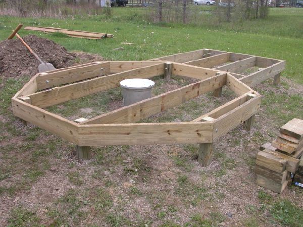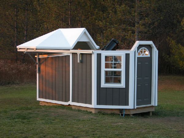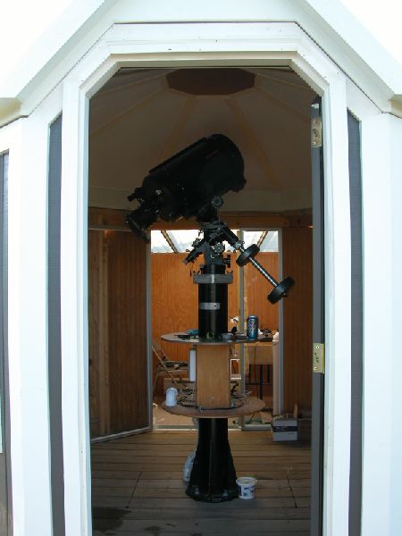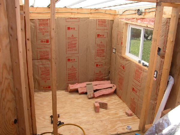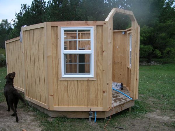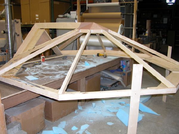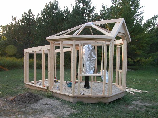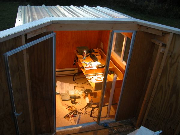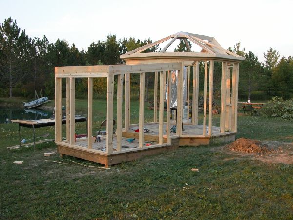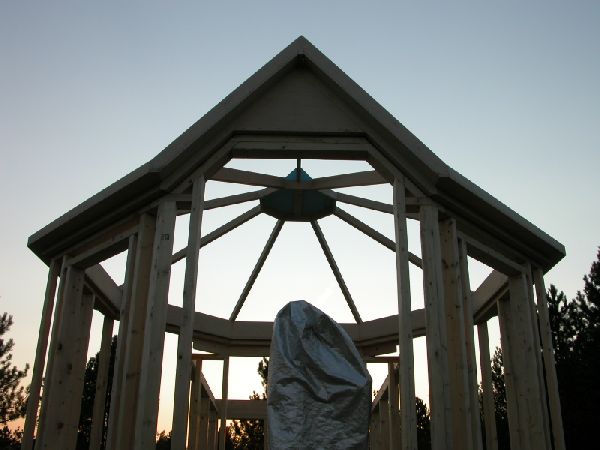 The deck and pier were built in the spring of '05. The construction of the enclosure was begun in mid-fall of '05. I thought it would take 6 weeks but winter set in early and the project took 6 months! The octogonal area is 9 ft. flat to flat. Attached to the back is the control room area which is about 7x7 ft.
